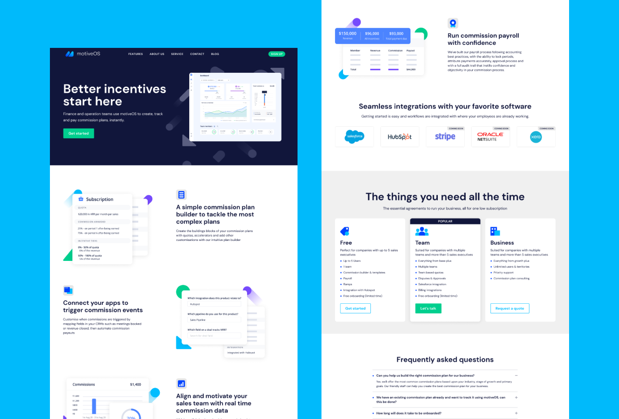 We discover that primarily, MotiveOS want their web visitor to understand the value propositions and key features of the company. Therefore we need to showcase their app snippets in an engaging and compelling way. As we explore their brand identity, we start to create a set of illustrations, iconography, and app snippets to spark the website. Finally, the website has been built with WebFlow, and we also optimise their on-page SEO.